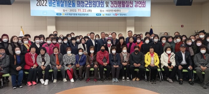 [로컬세계=박상진 기자]경북 의성군 바르게살기운동의성군협의회는 지난 22일 비안 만세센터에서 김주수 의성군수를 비롯한 관내 기관·단체장과 바르게살기운동 회원 등 200여명이 참석한 가운데 '2022 바르게살기운동 의성군회원대회 및 건전생활실천강연회'를 개최했다.