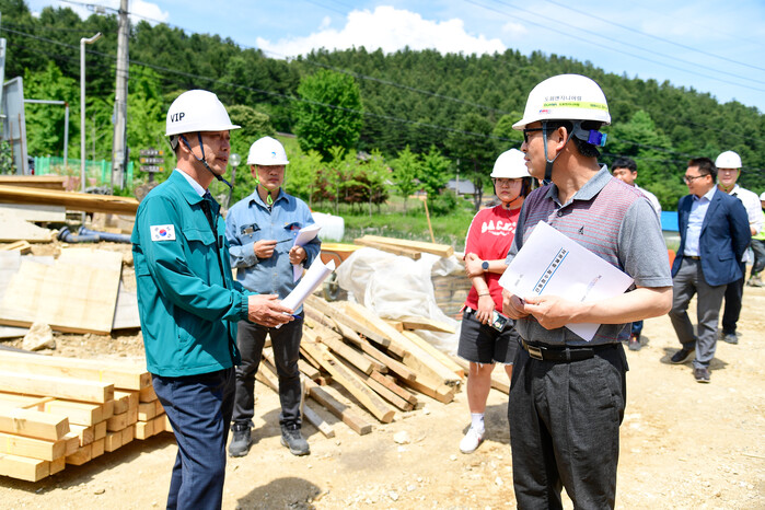 ▲ 지기선 화천부군수(왼쪽)가 화천군 일대 집중안전점검에 나서고 있다.(사진=화천군청 제공) |