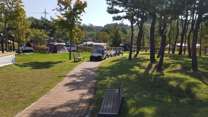 캠핑장에 오면 깡통열차도 무료로 이용 할 수 있으며 아이들을 위해 모래놀이터도 만들어 놓았다.