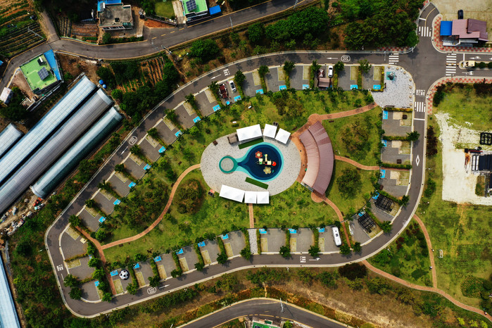 특히 오토캠장장은 큐브모양 글팸핑이 5동으로 1, 2층으로 이용할 수 있으며 찜질방도 있다는게 장점이다.
