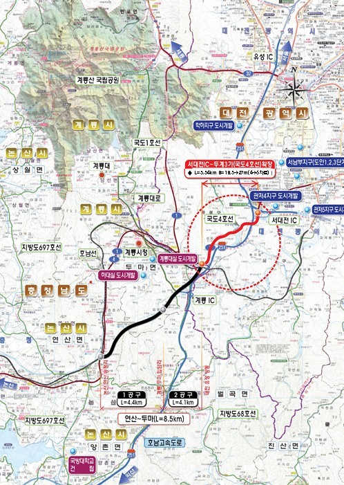 [로컬세계 송요기 기자]대전광역시는 대전지방국토관리청이 추진 중인 계룡시 국도대체우회도로(연산~두마) 건설공사와 연계해‘서대전IC~두계3가(국도4호선) 도로확장공사’사업 추진에 박차를 가하고 있다고 15일 밝혔다.