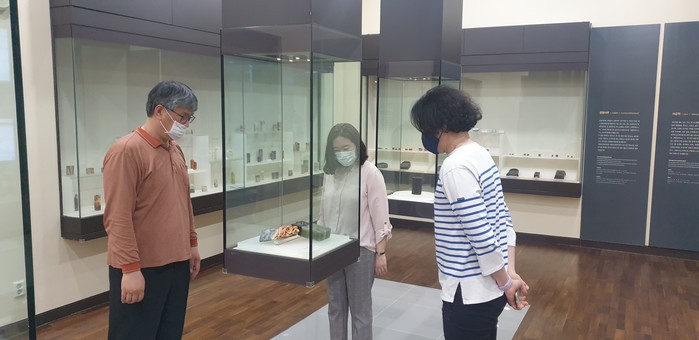 | ▲박물관 전시물을 관람할 때는 반드시 마스크를 쓰고, 다른 사람과 거리를 둬야 한다.(수원시 제공) |