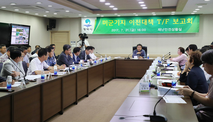이에 따라 미군이전 대책 사업들을 계획적이고 전략적으로 마련하고자 2014년부터 ‘미군기지 이전대책 T/F’를 구성하고 4개 분야, 19개 과제를 선정해 미군과 미군가족을 맞이할 준비를 철저히 하고 있으며, 진행상황 점검을 위해 마련됐다.