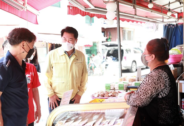 ▲ 조원동 강남골목시장에 방문한 박준희 관악구청장. |