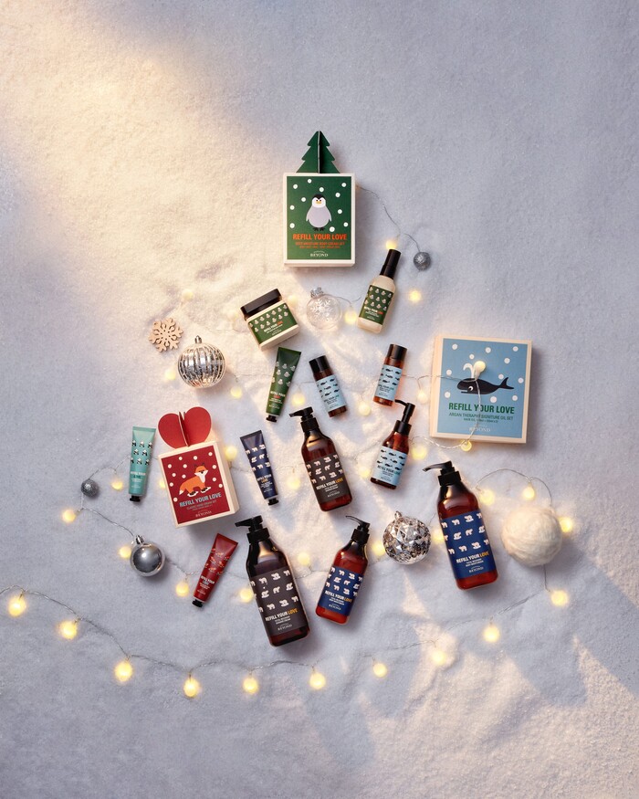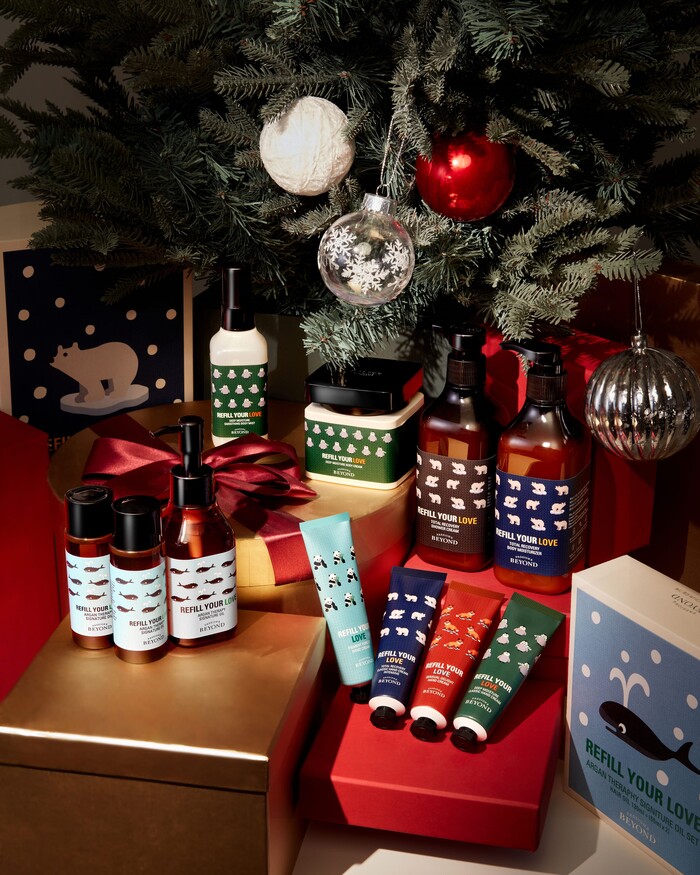 한편, 클린 뷰티 브랜드 비욘드의 홀리데이 리필 유어 러브 에디션은 전 제품에 FSC 인증 개입 상자를 사용하고 세트 내장 포밍에 대하여 폐플라스틱으로 만든 재활용 포밍을 사용했으며, 구매 고객 일부에게 동물 모티브를 사용한 양말 스페셜 팩을 구매금액 단위로 증정한다. [로컬세계 = 마나미 기자]