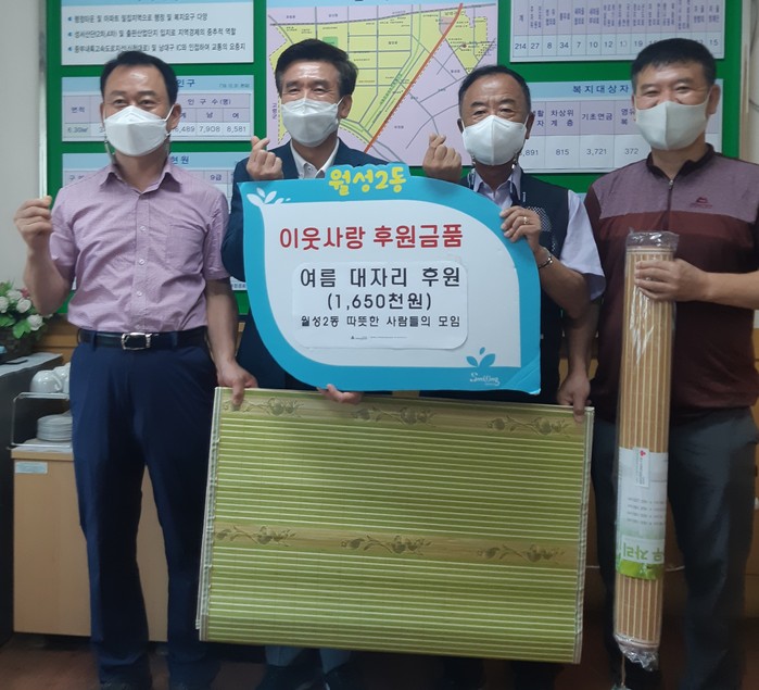 [로컬세계 박세환 기자]대구 달서구 월성2동은 지난 20일 지역주민을 위한 봉사단체인 '따뜻한 사람들의 모임'에서 ‘여름용 대자리(165만원상당)’를 후원했다고 21일 밝혔다.