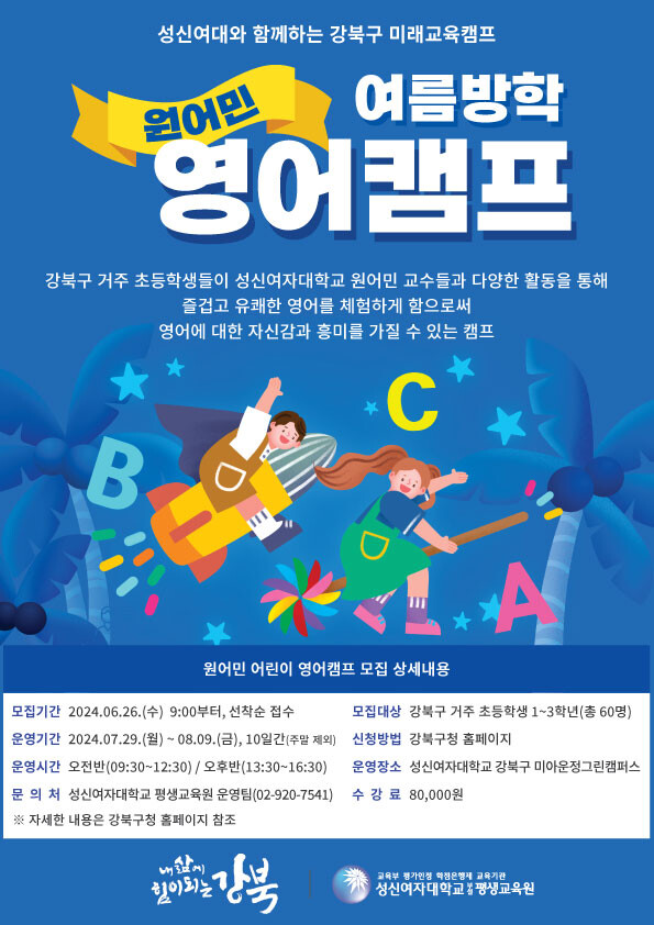 참여 대상은 강북구에 거주하고 있는 초등학생 1~3학년 60명이며, 레벨테스트를 거쳐 초급반과 중급반으로 구분된다. 강의는 성신여자대학교 원어민 교수들이 맡는다.
