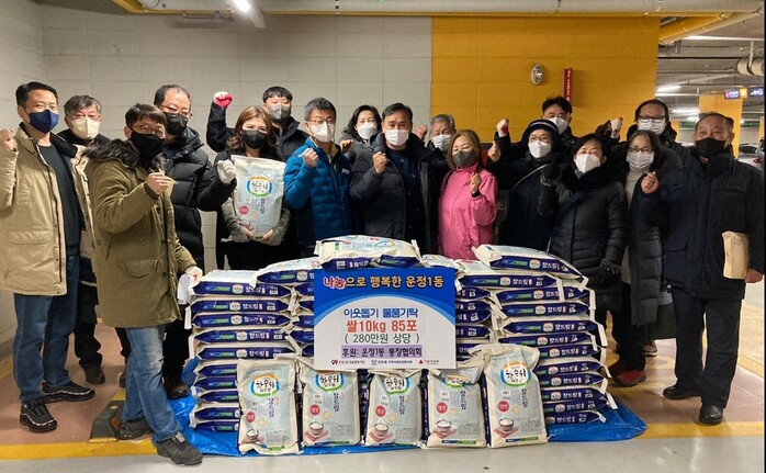 같은 날 운정1동 통장협의회(회장 윤영삼)에서도 280만원 상당의 쌀10kg 85포를 기부했다.
