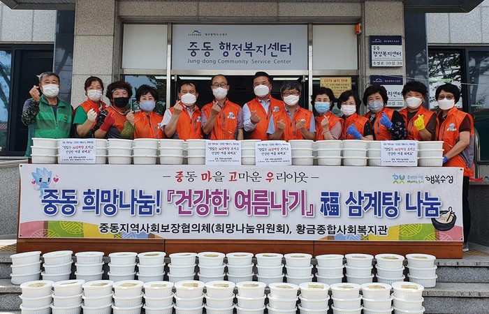 [로컬세계 박세환 기자]대구 수성구 중동지역사회보장협의체(위원장 정인출)는 지난 20일 경로당 어르신 및 취약계층 200여 명에게 삼계탕을 전달하는 ‘건강한 여름나기 福삼계탕 나눔 행사’를 가졌다.