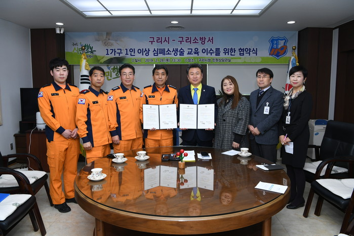 [로컬세계 고기훈 기자]경기 구리시는 지난 28일 시청 민원상담관실에서 1가구 1인 이상 심폐소생술 등 응급처치 교육이수를 적극적으로 실시하고자 구리소방서와 업무 협약을 맺었다고 4일 밝혔다.
