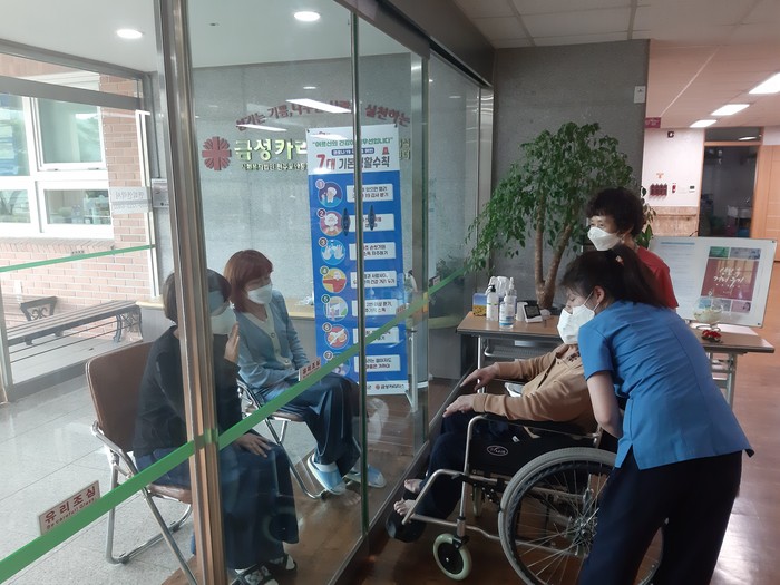 관내 요양시설에서는 생활수칙 홍보 배너를 제작해 시설 입구 등에 설치하고 사전예약제를 통한 비접촉 면회를 실시하고 있으며, 별도로 마련된 독립 공간에서 철저한 방역 하에 입소자와 면회객들의 안전한 비접촉 면회를 시행하고 있다.