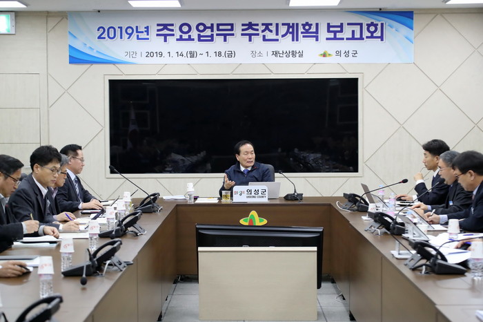 김주수 군수는 “새롭게 재정비한 행정조직을 바탕으로 2019년 군정 역점시책으로 추진하는 '이웃사촌 청년시범마을' 조성사업과 통합신공항유치와 반려동물문화, 4차산업센터 건립 시대 ICT접목 스마트팜 조성, 도시재생사업과 신활력플러스사업, 관광인프라조성사업 등은 지방소멸에 대한 우리군의 선제적 대응방안으로 공직자 모두 맡은바 임무에 최선을 다해 활력넘치는 희망의성을 함께 만들어가자”고 말했다.