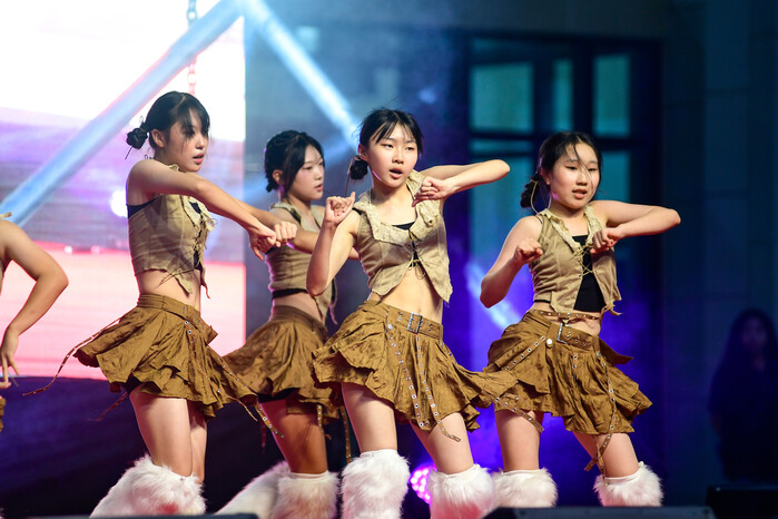 ▲ 제14회 T&U 전국 청소년 가요제 댄스부문 동상 팀이 공연하고 있다. |