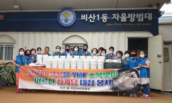[로컬세계 박세환 기자]대구 서구 비산1동 주민자치위원회(위원장 양종석)는 초복을 맞이하여 독거노인 및 저소득 어르신 100세대에게 삼계탕, 과일, 양말로 정성껏 준비한 복꾸러미를 직접 방문해 안부를 묻고 전달했다.