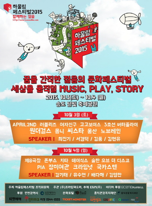 축제 첫날인 다음달 3일에는 청순한 이미지로 인기를 모으고 있는 여자친구와 개성있는 복고풍 음악으로 돌아온 원더걸스, 씨스타, 러블리즈, 노브레인, 3호선 버터플라이, 몽니, 웅산, APRIL2ND이 공연을 펼치며, 최근 ‘냉장고를 부탁해’에 출연중인 김풍 웹툰작가, 김현유 구글 상무, 최진기 오마이스쿨 대표, 서경덕이 강연자로 참석해 다양한 주제의 이야기를 들려줄 예정이다.