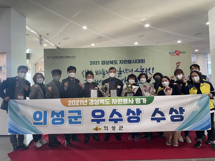 2021년 11월 24일 경북도청 동락관에서 진행된 ‘2021년 경상북도 자원봉사대회’에서 우수상을 수상한 의성군은 자원봉사 참여율, 자원봉사 활성화, 공무원 봉사활동 및 기타 가산부문 등 항목으로 구성된 평가에서 우수한 실적을 거두었다. 이로써 2020년 우수상 수상에 이어 2년 연속 기관표창을 수상하는 쾌거를 이루게 됐다.