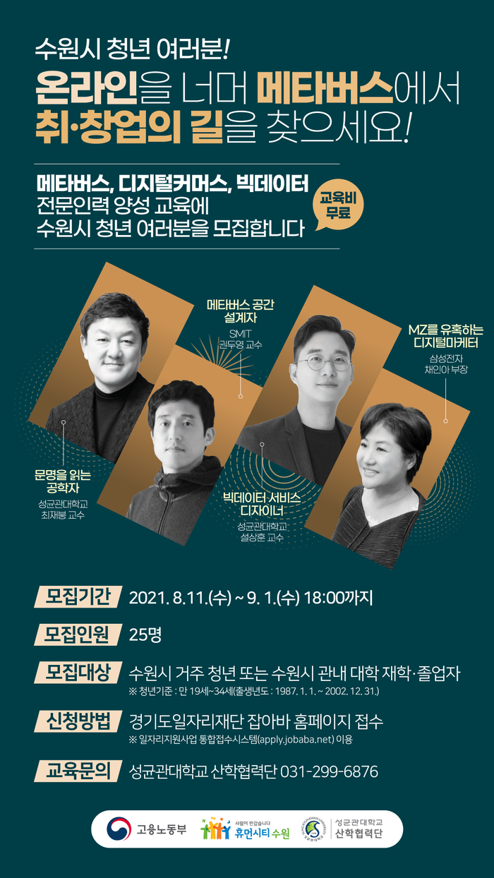 성균관대 교수와 관련 분야 현업 전문가로 강사로 나선다. 사업은 성균관대 산학협력단이 수행한다. 교육은 9월 6일부터 12월까지 진행된다.