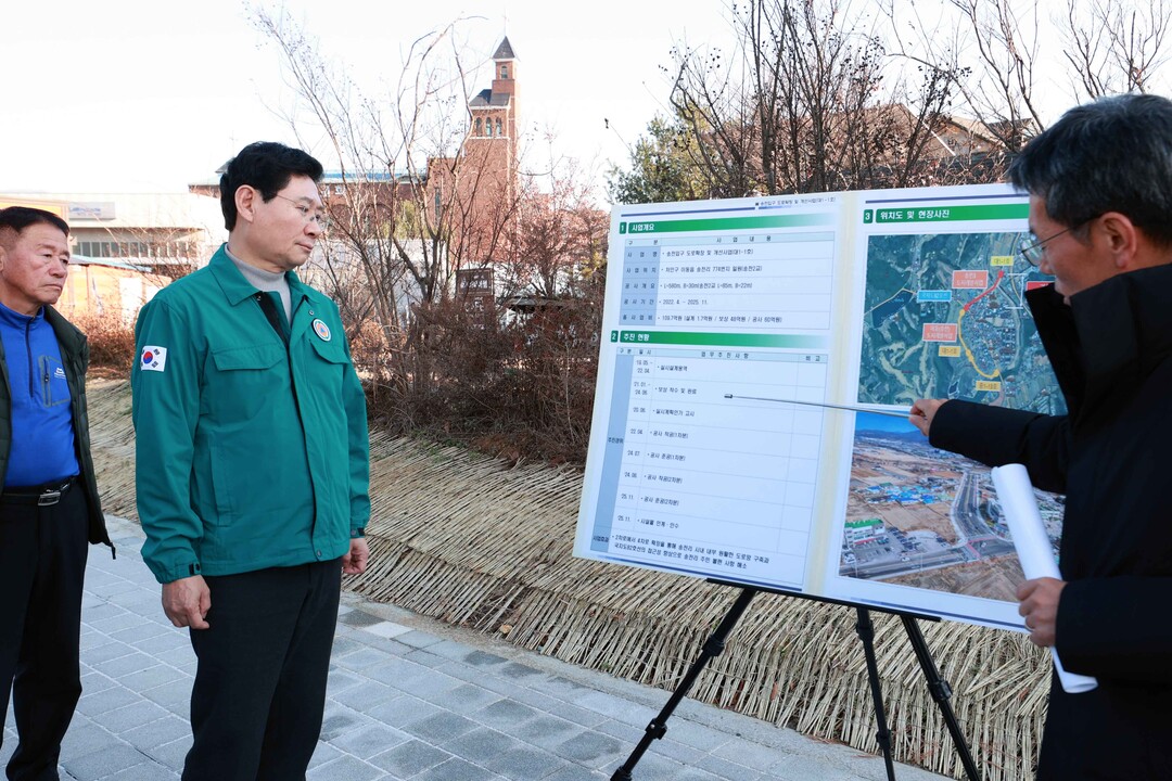 이상일 시장은 확장공사가 마무리된 도로 현장을 둘러보고 주민 의견을 청취했다. 현장에 참석한 송전 지역 주민들은 도로 확장과 생활환경 개선을 위한 시의 추진에 감사의 뜻을 전했다.