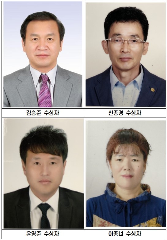 군은 지난달 31일까지 읍면이나 단체에서 추천받은 4개 부문(지역사회발전1·문화체육1·산업경제1·봉사효행2) 5명의 후보 중 엄정한 심사를 거쳐 군의 발전과 지역사회의 기풍을 진작시키는데 공적이 뚜렷한 4명(김승준, 윤영준, 신종경, 이종녀)을 수상자로 선정했다.