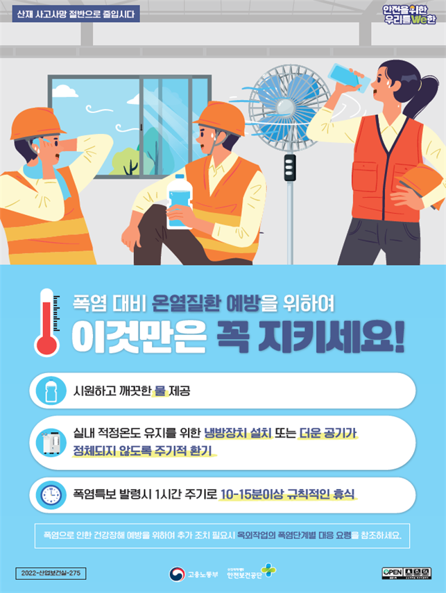 여름철 열사병 등 온열질환 예방을 위해서는 사업주가 3가지 사항을 반드시 준수해야 한다.