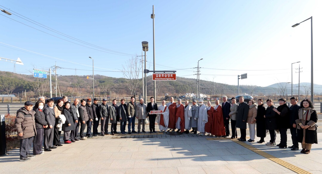 [로컬세계 = 김병민 기자] 경기 용인시는 지난 18일 처인구 남사읍 처인성역사교육관에서 ‘김윤후승장로’ 명예도로명판 제막식을 열었다고 밝혔다.