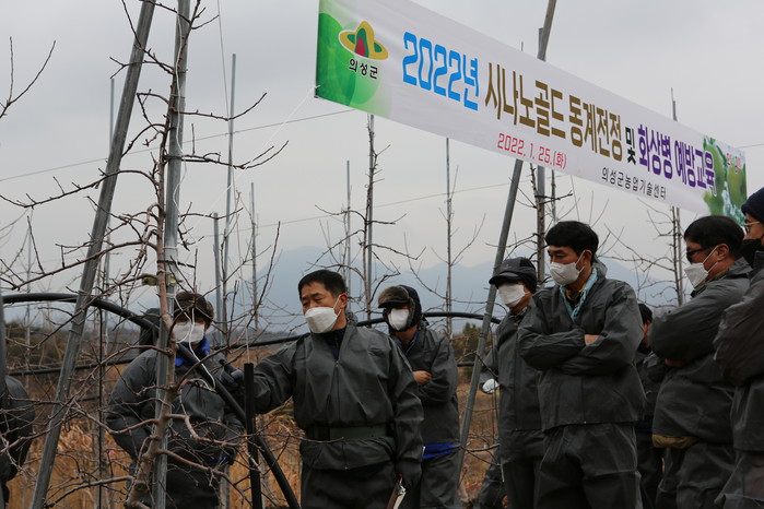 [로컬세계 박상진 기자]경북 의성군은 지난 25일 금성면 도경리 농가포장에서 진황사과연구회원 30명이 참석한 가운데 시나노골드 동계전정 및 과수화상병 예방 교육을 실시했다고 26일 밝혔다.