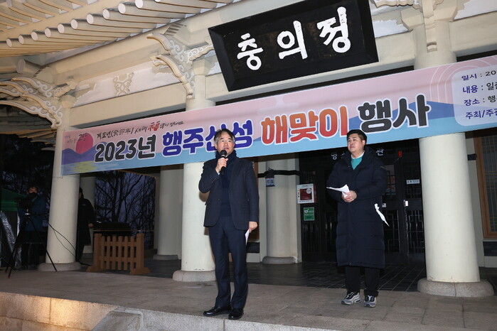 이날 행사는 행주산성 정상 충의정 일대에서 취타대의 연주를 시작으로, 플래시몹, 새해덕담, 일출 카운트다운 그리고 시민의 소망을 담은 북 울리기로 마무리됐다.