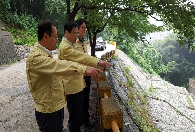 이어 북구지역에 최근 7월 1일부터 4일간 이어지는 잦은 강우로 인해 약해진 토양의 지지력 및 법면부분 사전 점검의 일환으로 실시됐다