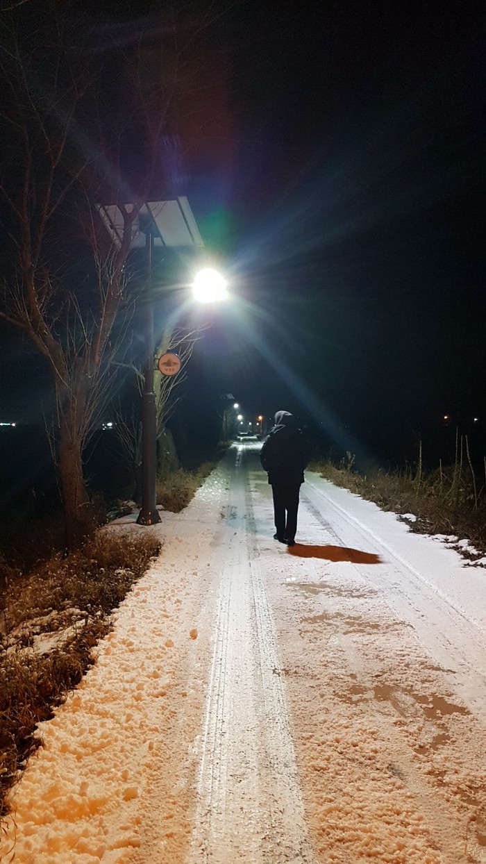 | ▲의성군은 금성면 탑리여자중학교 주변에 태양광 안심가로등 50개를 설치했다.(의성군 제공) |