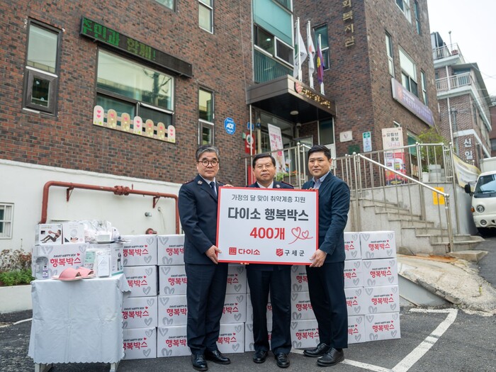 균일가 생활용품점 (주)아성다이소가 가정의 달을 맞아 구세군과 사회적협동조합 마리에뜨(이하 마리에뜨)에 행복박스 600개를 전달했다고 11일 밝혔다.