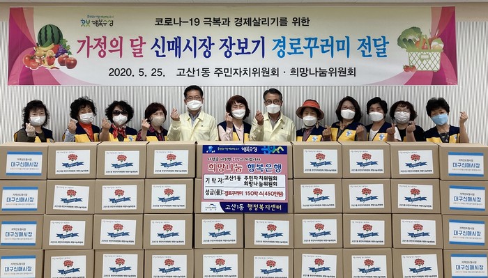 [로컬세계 박세환 기자]대구 수성구 고산1동 주민자치위원회(위원장 김봉철) 및 희망나눔위원회(위원장 정명자)는 지난 25일 가정의 달을 맞아 어르신 가정에 경로꾸러미 150상자(450만원 상당)를 전달했다.