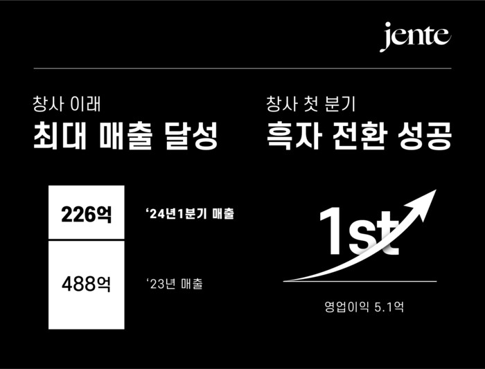 ▲명품 플랫폼 젠테(jente)는 2024년 1분기 226억원의 매출과 5.1억원의 영업이익을 기록하며 창사 이후 처음으로 분기 흑자를 달성했다고 24일 밝혔다. |