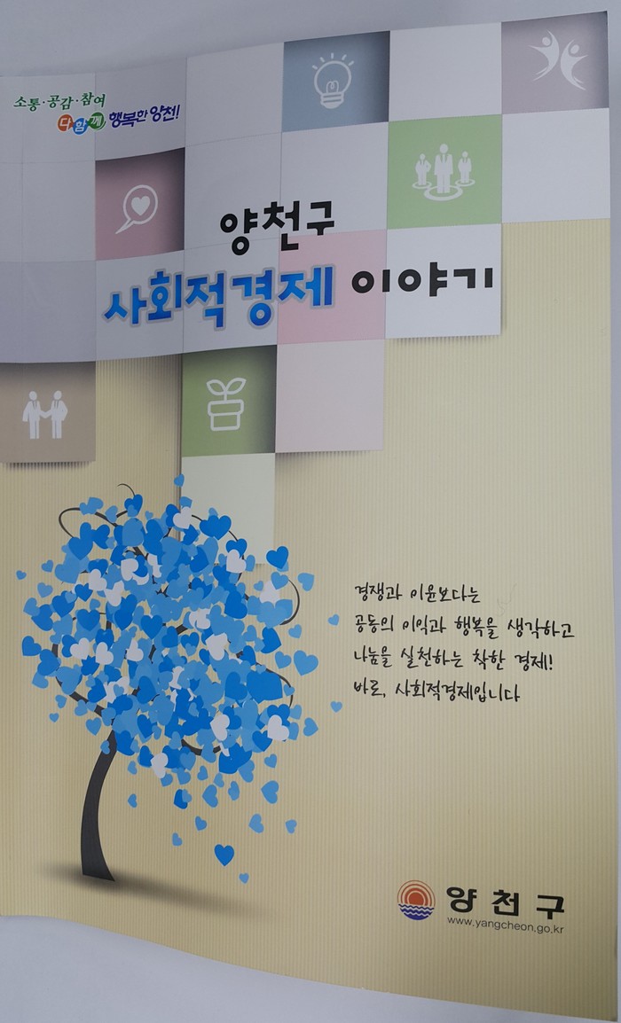 [로컬세계 박종길 기자] 민선6기 구정운영 핵심사업의 하나로 사회적경제 활성화를 적극 추진하고 있는 양천구가 주민들에게 사회적경제를 쉽게 설명하고자 홍보책자인 ‘양천구 사회적경제 이야기’를 발간했다.