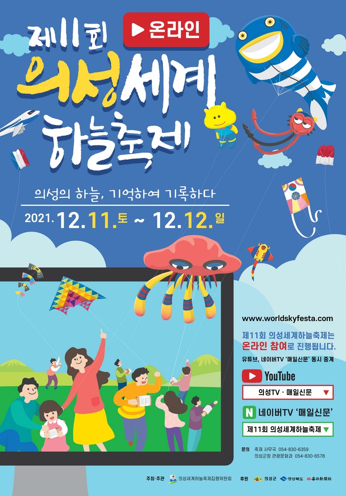 [로컬세계 박상진 기자]경북 의성군은 의성세계하늘축제집행위원회가 주최・주관하고 경상북도, 매일신문사가 후원하는 제11회 의성세계하늘축제(이하 하늘축제)를 오는 12월 11일과 12일 양일간 온라인으로 개최한다.