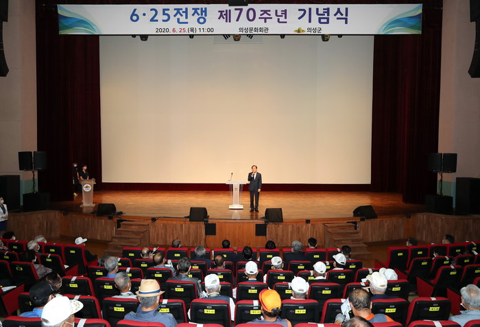 [로컬세계 박상진 기자]경북 의성군은 25일 오전 11시 의성문화회관에서 참전유공자와 보훈가족 등 120여 명이 참석한 가운데 6.25전쟁의 역사적 교훈을 되새기고, 호국영령 및 참전유공자의 넋을 기리기 위해‘6.25전쟁 제70주년 기념식’을 개최했다.
