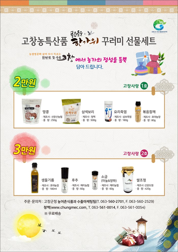 문의는 고창군청 농어촌식품과(560-2701)나 청맥(www.chungmec.com, 561-0014)으로 하면 된다.