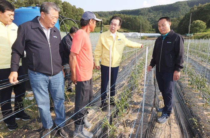 이성희 농협중앙회장은 13일 최근 갑작스런 우박으로 농업피해가 큰 충북 제천 및 충주 관내 피해 농가를 찾아 피해현황을 살피고 실의에 빠진 농업인을 위로했다.