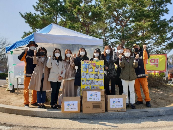 이날 기쁨어린이집 교직원들은 코로나19 확진자가 폭증하면서 대구에 어려움을 함께 나누고자 전국 각지에서 달려온 119구급대원들에게 감사의 마음을 담아 간식을 제공하고 119 구급대원들을 응원했다.