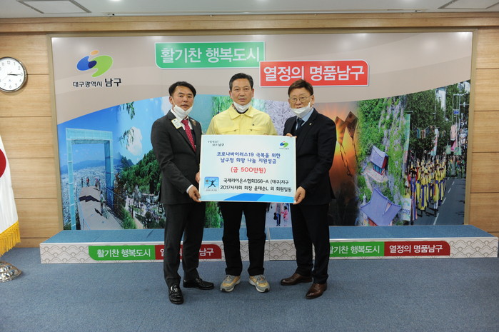 [로컬세계 박세환 기자]대구 남구는 지난 11일, 국제라이온스협회 356-A(대구)지구 2017 사자회(회장 윤태순 L 외 회원)에서 코로나19 확산에 따른 지역의 위기 극복을 위해 성금 500만원을 전달했다고 12일 밝혔다.