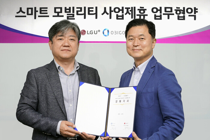 LG유플러스는 오비고에 72억3천210만원(지분율 5%) 규모의 지분 투자를 단행하고, 스마트 모빌리티 사업 제휴를 위한 협약을 체결했다고 3일 밝혔다. LG유플러스 용산사옥에서 열린 사업 제휴 협약식은 LG유플러스 최택진 기업부문장(부사장), 오비고 황도연 대표 등 양사 주요 경영진이 참석한 가운데 진행됐다.