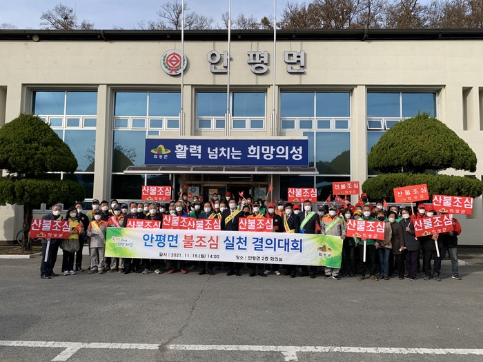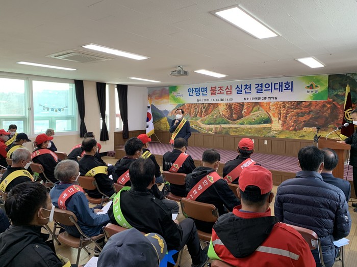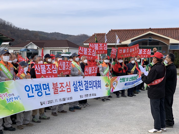 안평면은 가을철 산행인구 증가로 입산자 실화 위험이 높은 만큼 산불예방을 위해 주요 도로변에 산불조심 현수막 설치 및 깃발 게첨을 추진하고 마을앰프방송과 차량 가두방송을 활용해 주민들에게 산불에 대한 경각심을 심어주는 한편, 산불발생 시 신속한 출동태세를 갖춰 선제적 대응에 온 힘을 다할 예정이다.