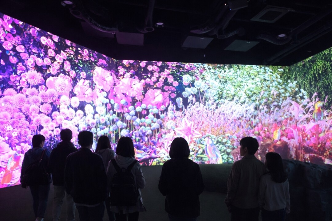 경주 동궁원 내 복합문화정원 ‘라원’ 전시관에서 관람객들이 AI 미디어아트로 구현된 ‘빛의 갤러리’를 감상하고 있다.경주시제공