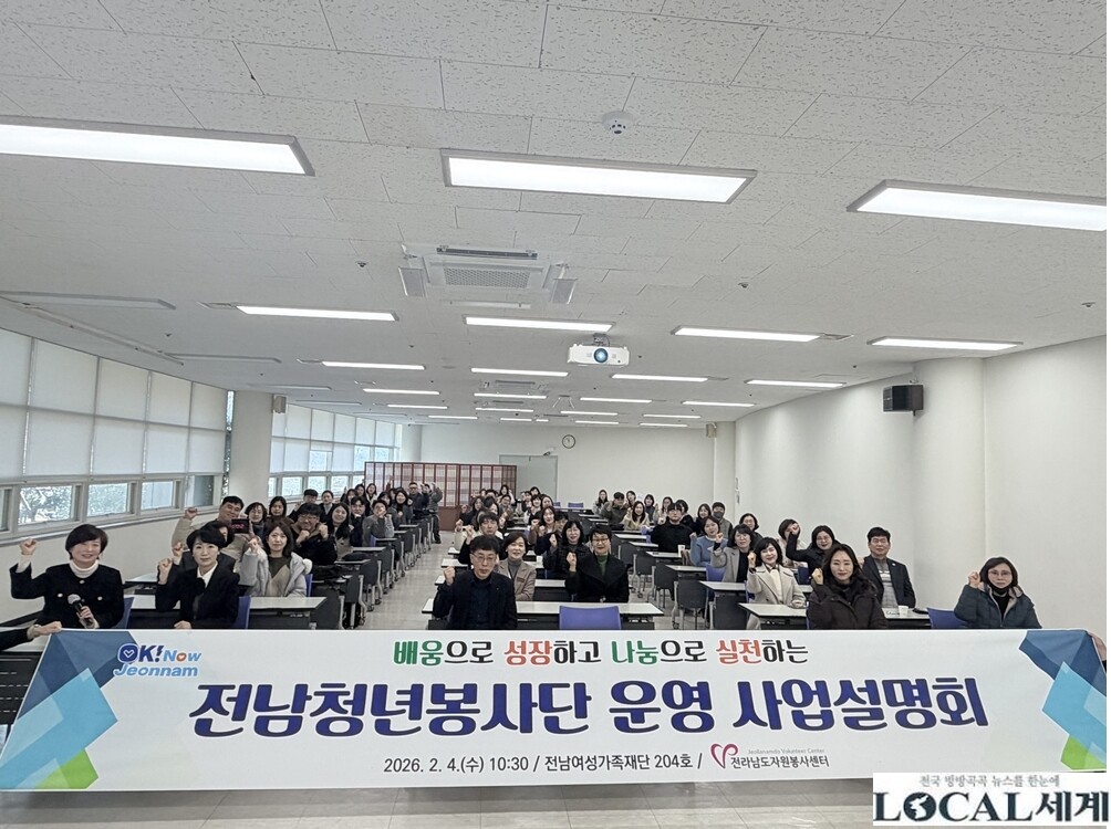 [로컬세계 = 김명진 기자]전라남도자원봉사센터(센터장 김상길)는 1월 4일, 도내 22개 시·군 자원봉사센터 관계자 70여명을 대상으로 「전남청년봉사단 사업설명회」를 개최하고, 2026년도 전남청년봉사단 운영 방향과 청년 모집 계획을 공유했다.