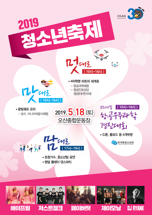 청소년축제 개막식에서는 오산시 시승격 30주년을 기념하는 홍보비행도 선보일 예정이다.