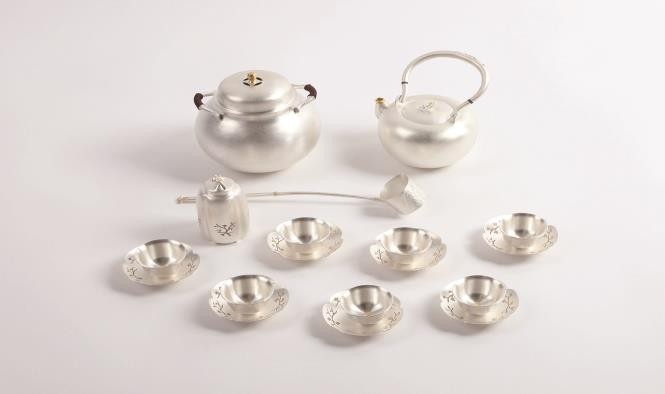 이중 차완용 작가(경기 구리시)의 금속공예품 ‘나눔’은 최고상격인 ‘대통령상’을 수상했다. 이 작품은 순은을 매화꽃 문양의 형태로 디자인해 전통기법으로 제작한 7인용 다기 세트로, 실용성과 예술성을 높이 평가 받았다.