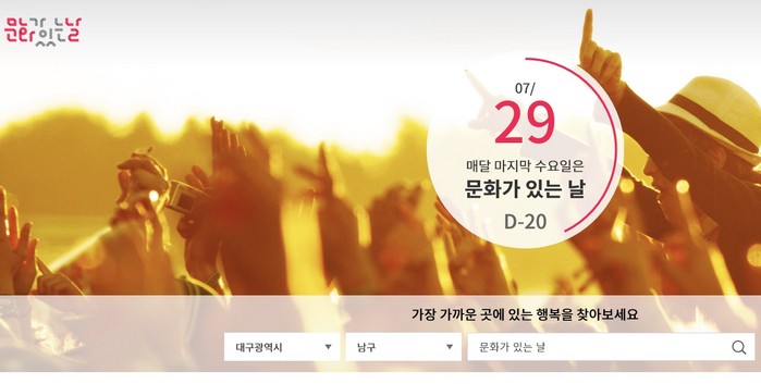 '문화가 있는 날'은 전국 문화시설의 문턱을 낮추고 국민 생활 속 문화 향유를 확산하기 위해 문화체육관광부가 2014년 1월부터 시행한 제도로 매달 마지막 주 수요일을 지정해 각종 행사를 진행하고 있다.