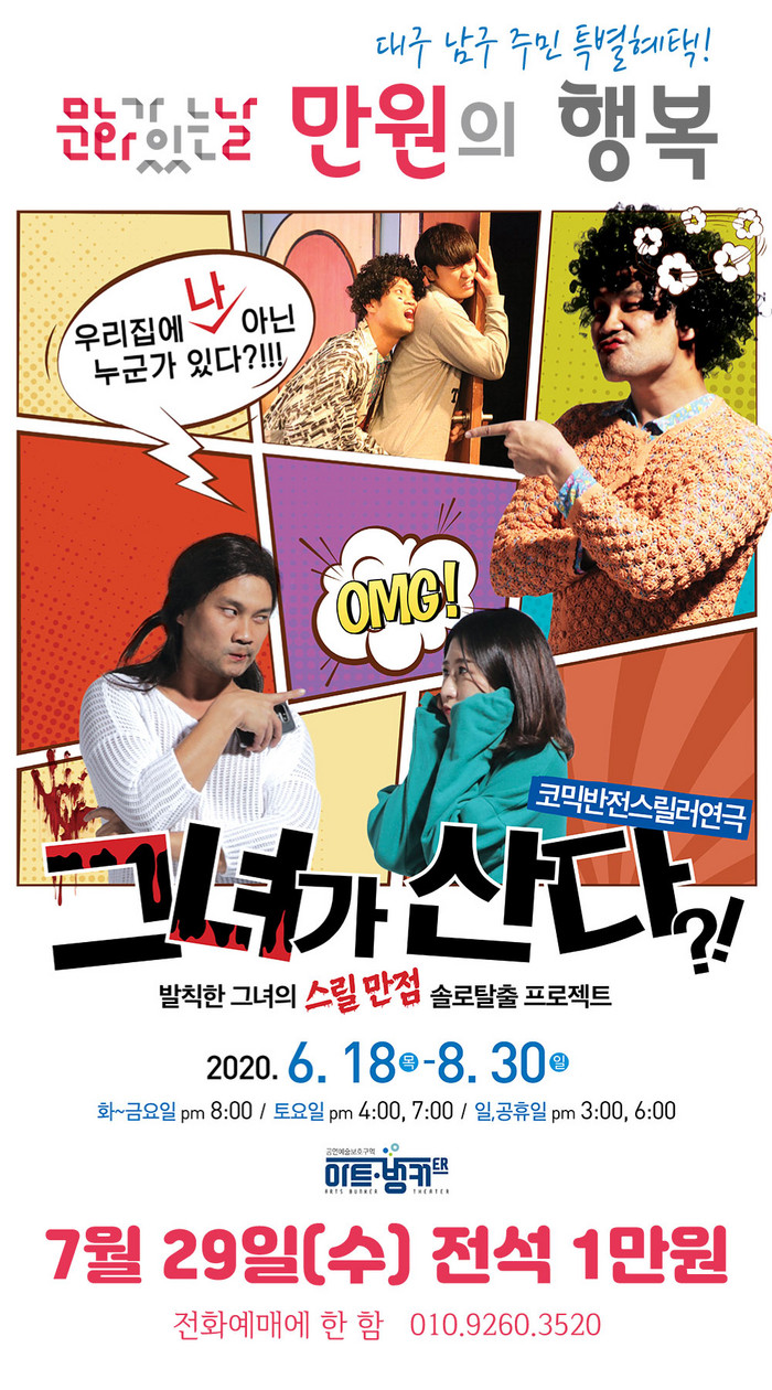또한 남구청은 코로나19 확산 방지를 위해 소극장들에 대한 지속적인 방역 점검과 함께 관람객들에게 전자출입명부를 통한 확인도 실시하고 사회적 거리두기를 위해 공연 좌석도 한정해서 판매할 예정이다.
