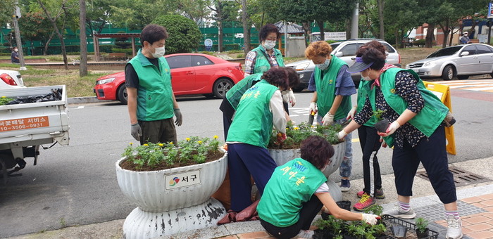 이번 행사는 내당4동 행정복지센터, 내당4동 파출소, 서구새마을지회 앞 등의 화분에 금잔화 등 200본을 식재해 가을의 정취를 느낄 수 있게 조성했다.