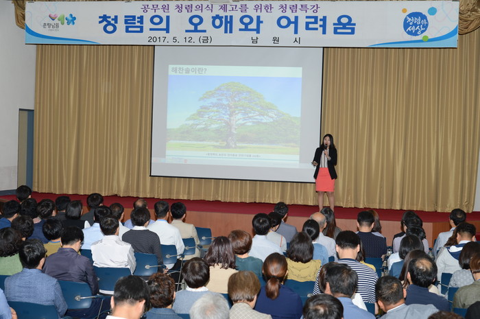 남원시에 따르면 30일 실시된 청렴교육은 시민의 편익과 직결되는 사업을 많이 추진하는 안전경제건설국 소관 직원들에 대한 청렴의식 제고를 위해 마련됐다.