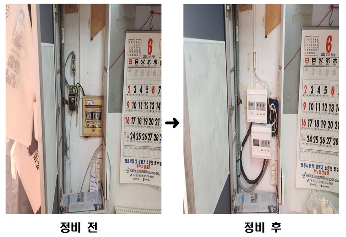 각 점포의 ▲옥내 배선 ▲분전반 ▲콘센트 ▲LED전등 등을 종합적으로 점검하고 노후화된 전기시설을 꼼꼼히 손봤다.